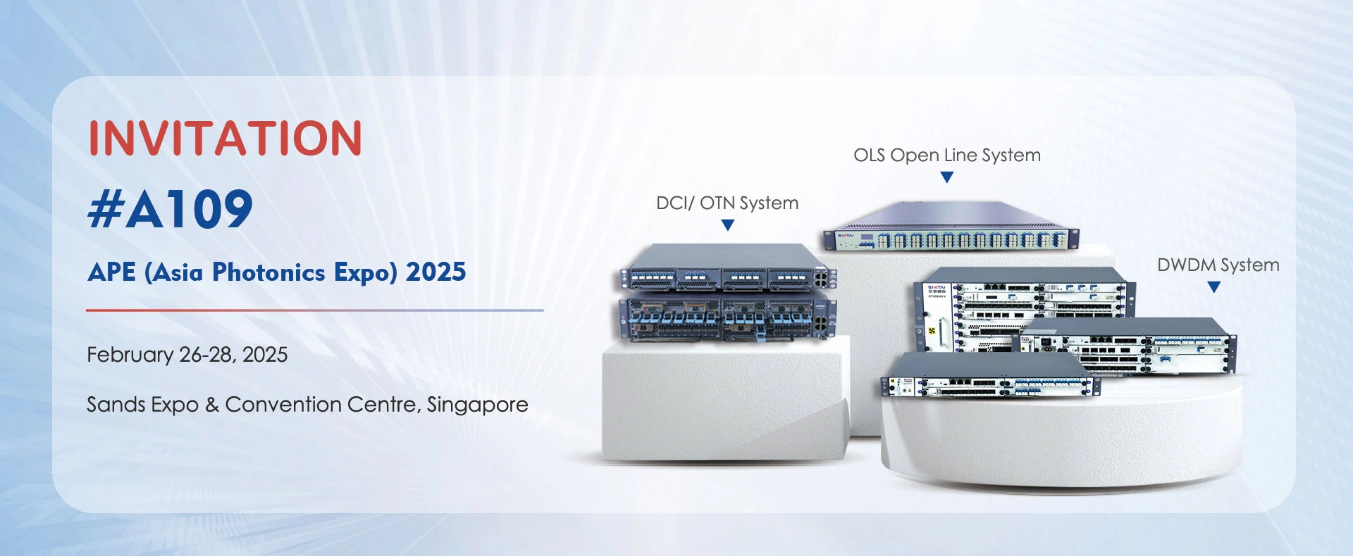 Sintai se compromete a proporcionar una variedad de sistemas de red de transporte óptico y equipos WDM. El Sistema de Comunicación de fibra óptica y los dispositivos de comunicación óptica son ampliamente utilizados por los operadores de telecomunicaciones y los clientes de la industria de redes privadas, incluyendo ISP, energía eléctrica, IDC, educación, radio y televisión, seguridad de red, big Data y servicios en la nube, etc.